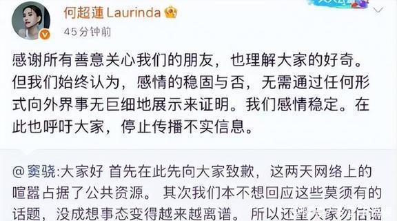 面对越来越热闹的舆论,窦骁和何超莲在10月23号晚上给回应了。窦骁先是对占用公共资源表示了歉意,还直言:“我们一开始没打算回应这些没有根据的猜测,没想到事情会变得越来越夸张。”所以,大家可别信那些谣言,也别到处去传。